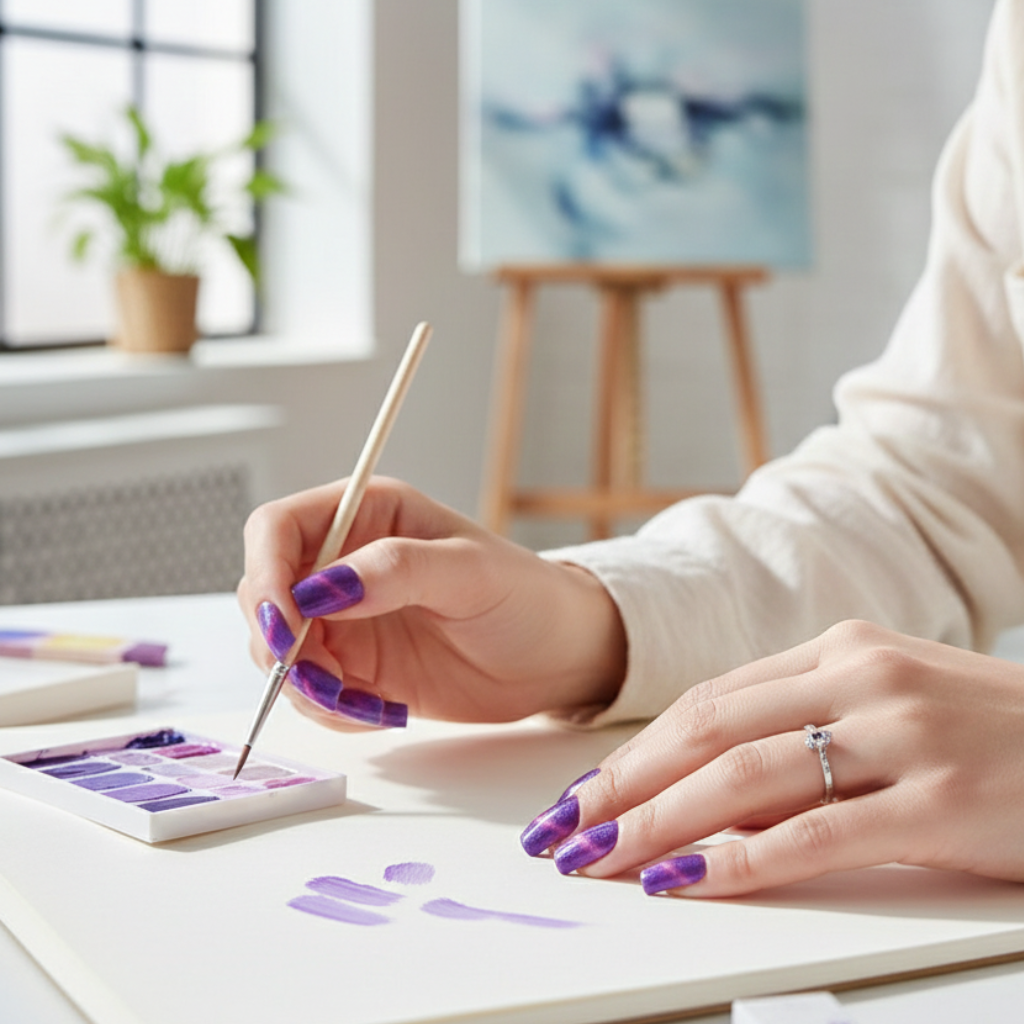 Lege deine Finger für 60 Sekunden unter die ManiVie UV-Lampe. Erst durch das Licht entfaltet der Strip seine volle Härte und den brillanten Gel-Glow.