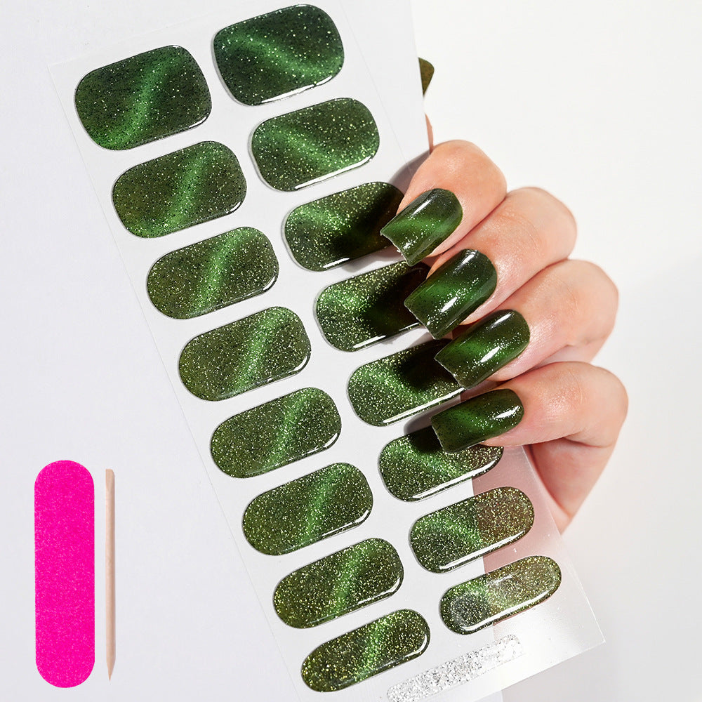 Wähle im Zweifelsfall immer die kleinere Größe. Wenn der Strip zu nah an oder auf der Nagelhaut klebt, kann er sich schneller lösen. Du kannst die Strips vor dem Aufkleben auch ganz vorsichtig mit den Fingern minimal in die Breite ziehen, um sie anzupassen.