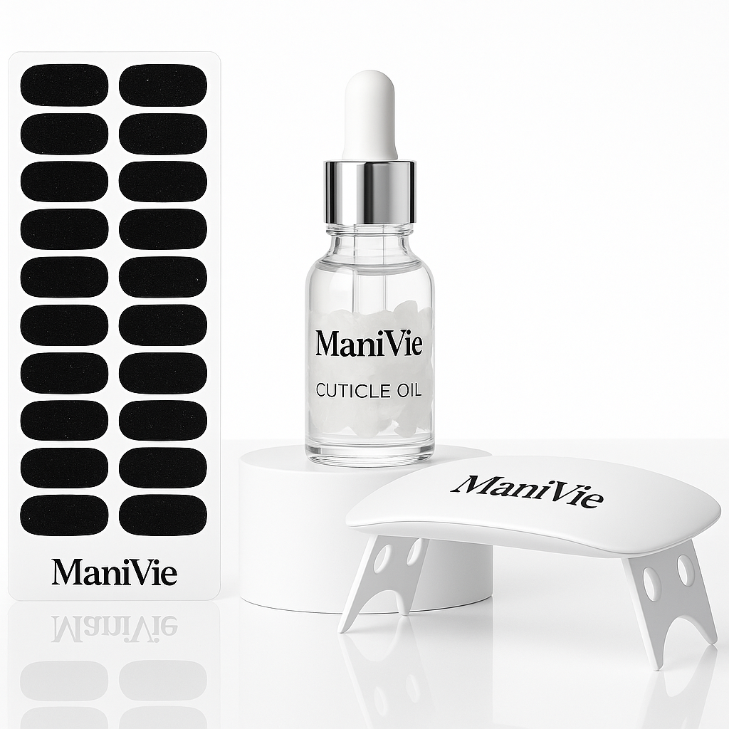 Lege deine Finger für 60 Sekunden unter die ManiVie UV-Lampe. Erst durch das Licht entfaltet der Strip seine volle Härte und den brillanten Gel-Glow.